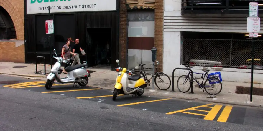 I had heard a little something about this a while ago, but the other day was the first day I actually saw some of them. I found scooter parking all along Sansom street. And as you can see, all the areas were in use. I guess it’s working. I...
