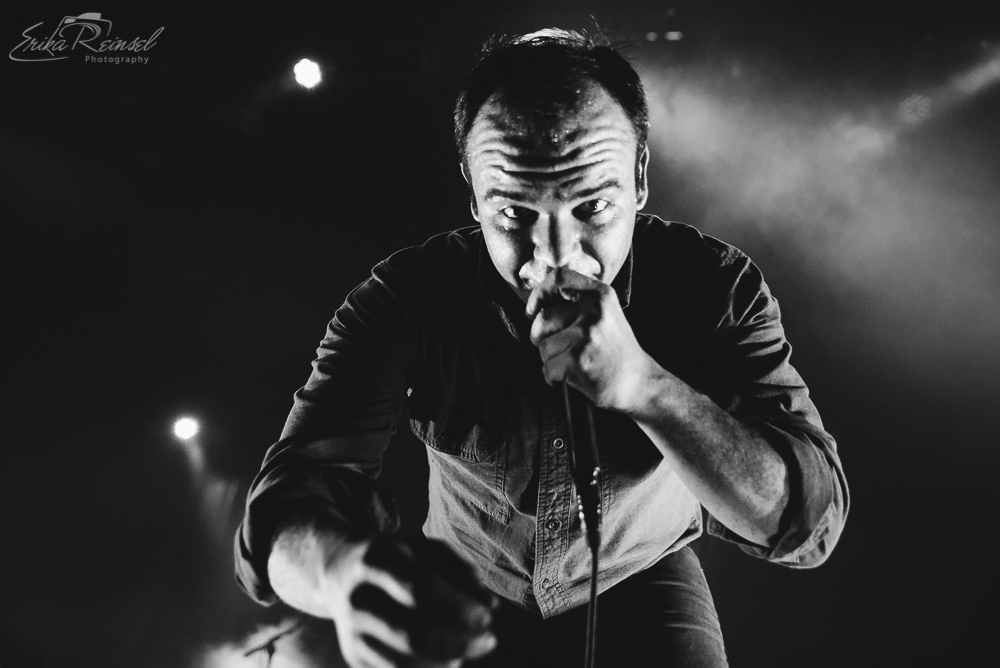 Throughout the set, Herring took breaks from the constant jumping, high-kicks, crawling, and chest thumping to reach out and grab the hands of his adoring fans (myself included). It was hard to keep your eyes off Herring, but the rest of the band, hidden dimly towards the back of the stage, was equally impressive.
