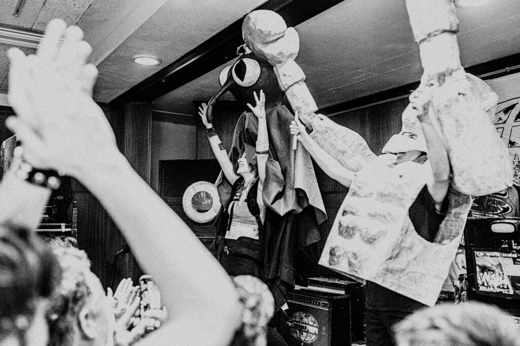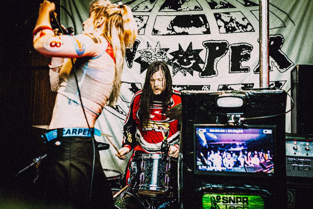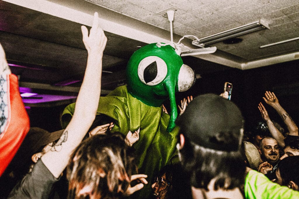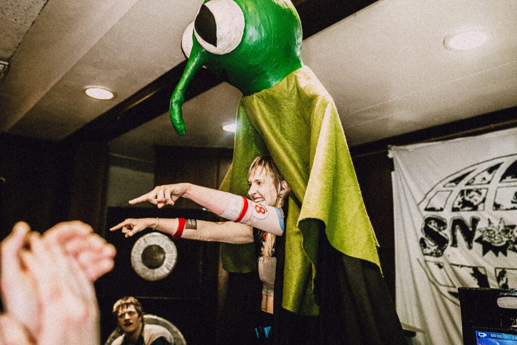 Snooper’s music is fast, repetitive, and chaotic, and their live shows bring an abundance of energy that’s felt throughout the audience members up front to the casual fans in the back. I love that they barely paused between songs, going from one loud, propulsive song directly into another. They handmade stage props, like massive faux-speakers, a giant 2000s-era cellphone with a screen displaying the crowd in action, and even costumes of their green bug mascot and a guy with fighting gloves that members of the band wear while dancing in the crowd during their last song. The show was a blast, I ended up very sweaty by the end of it.
